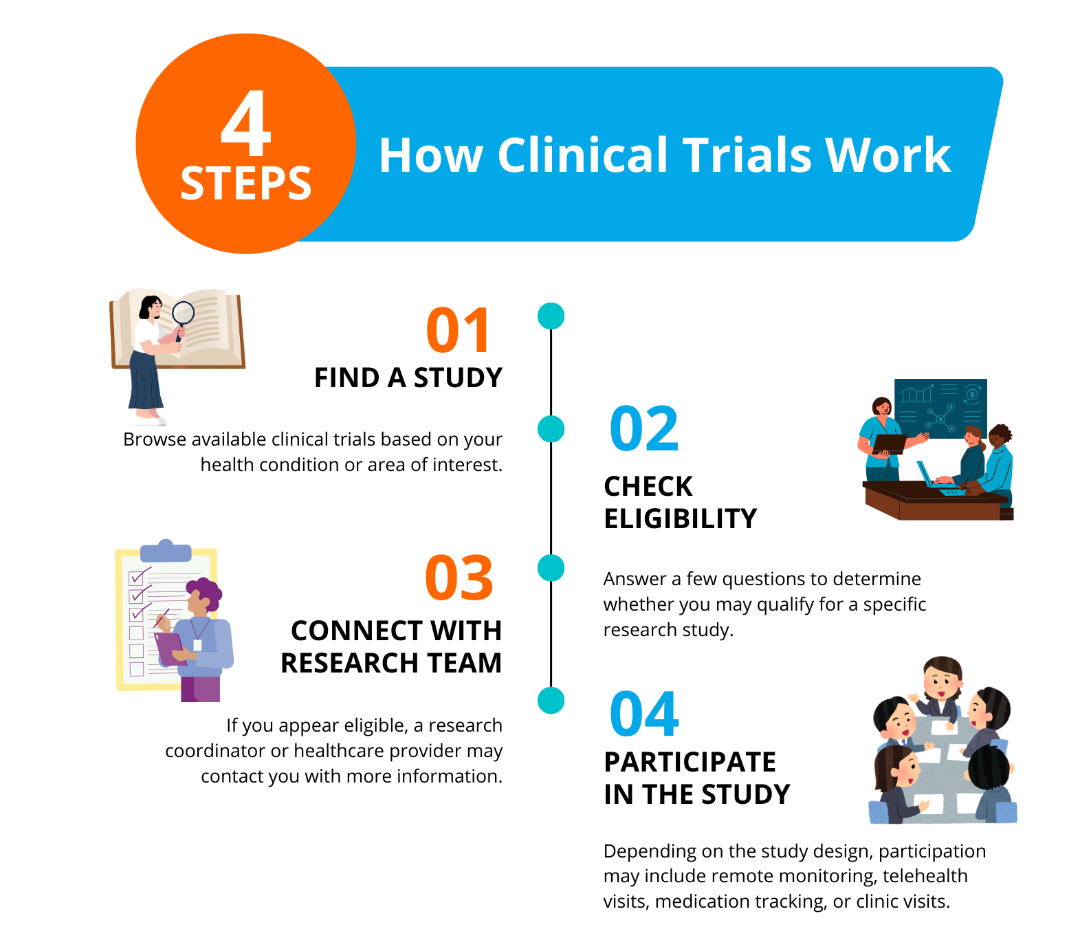 Participating in a clinical research program through MySmartCare360 typically follows a simple process.
